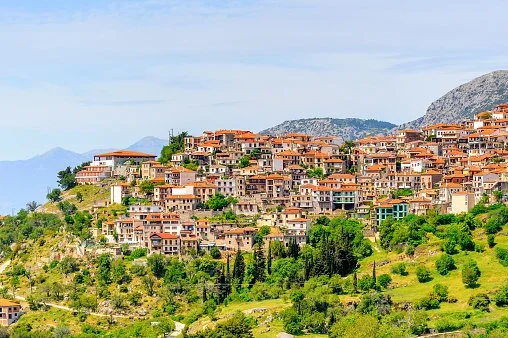 Since the 2011 local government reform it is a municipal unit, part of the municipality Distomo-Arachova-Antikyra. It is a tourist destination due to its location in the mountains, its traditions and its proximity to the town of Delphi. The town is a popular day or weekend trip destination from Attica and a gathering place for the rich and famous. This is not to be confused with Caryae (also spelled Karye) which is a town in the Southern Peleponnese that used to be called Arachova.