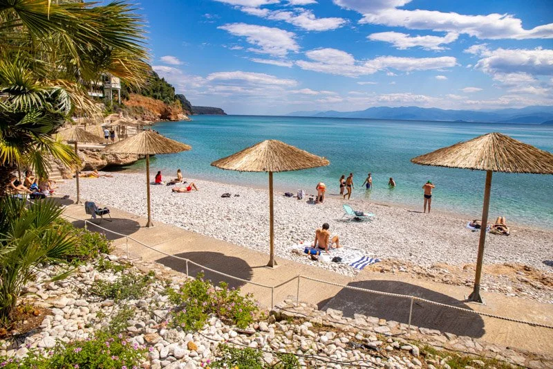 Arvanitia promenade, with its view of the Argolic Gulf, is Nafplio at its most romantic, reaching Arvanitias Square. Walking beneath the rock of Akronafplio and the pretty little chapel of Panagia tis Spilia (Virgin Mary of the Cave).